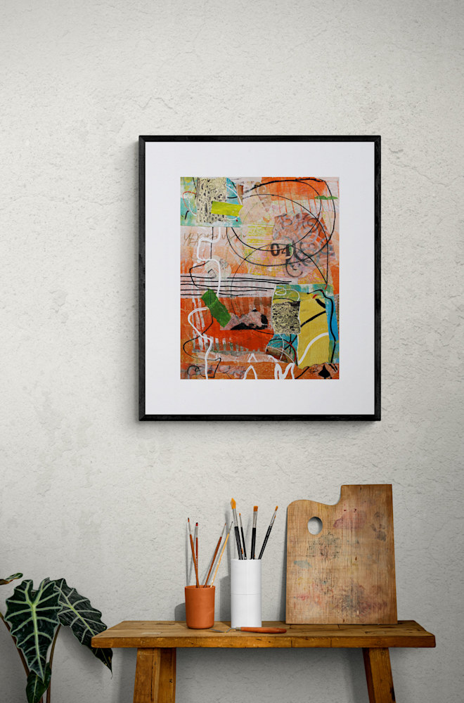 Chromatic Symphony is an exploration into the interplay of color and form through a vibrant and textured abstract composition. Bold black lines dance across the surface, creating a sense of movement and rhythm. Earthy greens and browns are juxtaposed with bright yellows and blues, while playful white squiggles add a whimsical touch. The overlapping layers and varied textures invite the viewer to delve into the painting’s depth and complexity. This piece captures an energetic visual rhythm, harmonizing unexpected colors and shapes into a captivating symphony of hues.