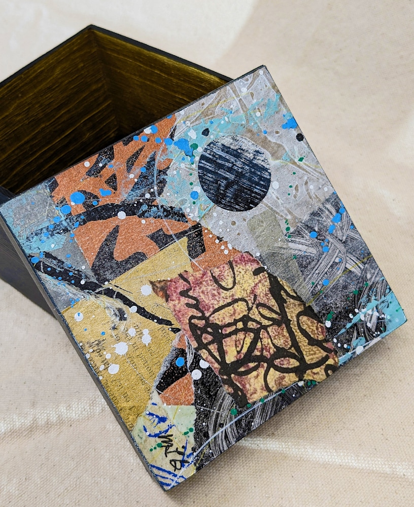 Bring a touch of contemporary sophistication to your space with this one-of-a-kind mixed media piece. “Stroll wooden box” invites the viewer into a vibrant interplay of color, texture, and form—each layer thoughtfully composed to spark curiosity and conversation. The tactile surface and dynamic shapes create a sense of movement, while the harmonious palette ensures versatility for a range of interiors.