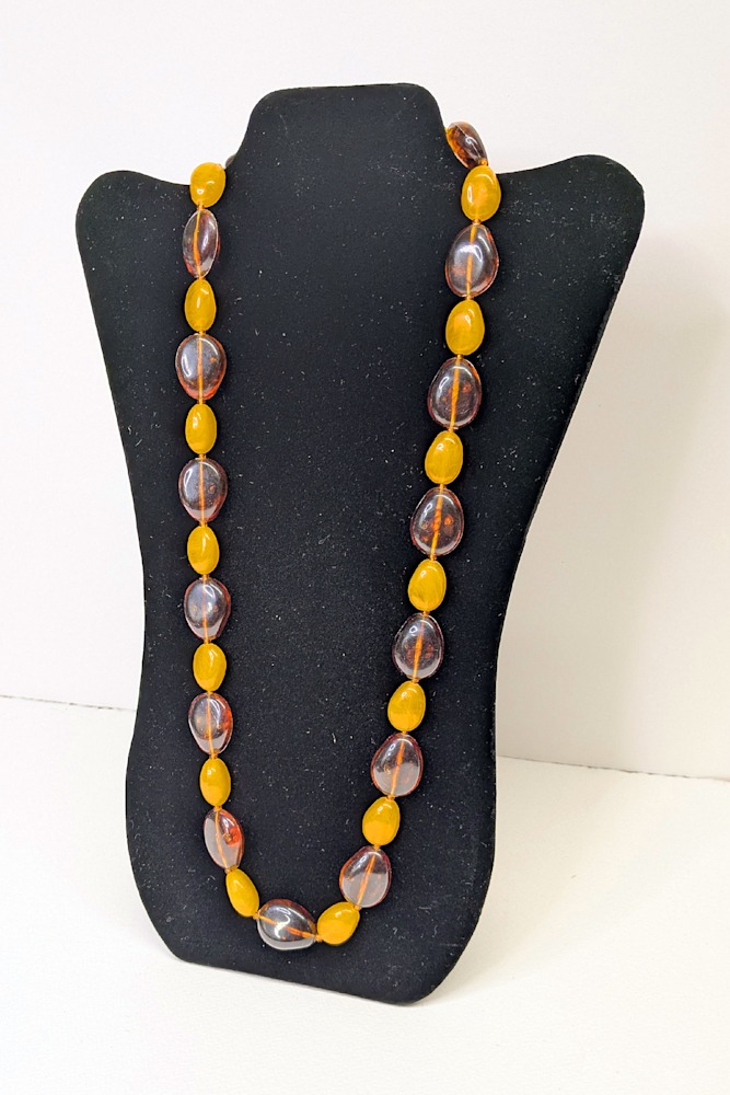 Vintage Beaded Necklace – Faux Amber & Opaque Yellow Oval Beads 30-inch